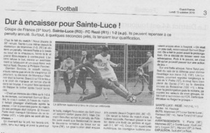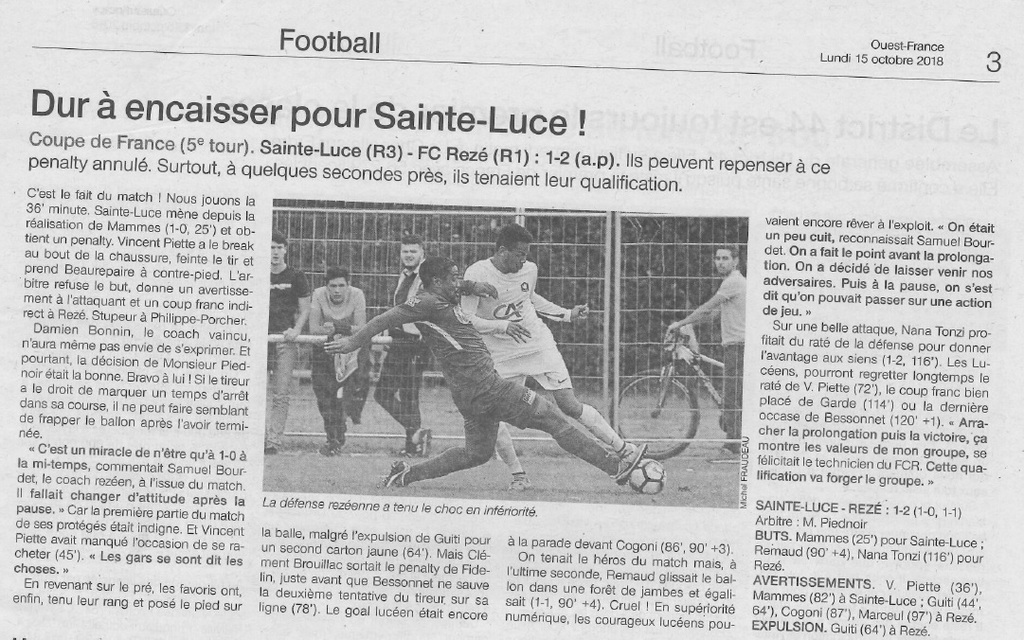 Par Jérôme Charrieau. Le tirage du 5ème tour de la Coupe de France effectué hier au siège du Crédit Agricole de Nantes a offert une affiche corsée pour l’USL. En effet, les Lucéens recevront à Porcher le dimanche 14 octobre la formation du FC REZE qui évolue en R1 (anciennement DH). Un plus gros morceau que le tour précédent attend les Bleus. Encore une fois pas favoris, ils vont tout mettre en œuvre pour franchir l’obstacle rezéen.