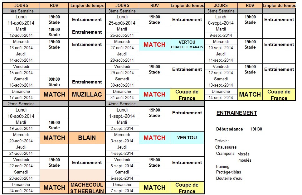 comme tous les ans voici le programme de la préparation pour la saison 2014/2015.